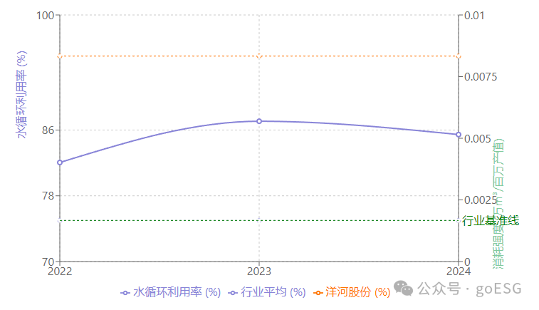 环境维度:关键环境绩效指标呈现结构性优化。水循环利用率从2022年的82.05%提升至2023年的87.07%,实现持续改善。温室气体排放总量在2023年同比下降18.57%后,2024年略有回升,但单位工业总产值二氧化碳排放强度连续三年保持下降趋势,其中2024年单位产品二氧化碳排放较2020年下降3%,超额完成年度目标2%。新鲜水抽取量连续三年下降,2022-2024年分别为701.95万立方米、658.50万立方米、635.11万立方米,单位产品耗水较2023年降低7.28%,超额完成短期目标5%。环境管理能力获权威认可,MSCI-ESG环境支柱得分从2022年的约3.5分跃升至2024年的6.0分,同比提升71.43%,其中产品碳足迹得分提升4.3分,水压力议题得分提升1.6分。需关注的是,2023年环保投入同比下降45.3%,综合能源消耗强度在2023年同比下降15.9%后,2024年微升至1.86,显示环境投入与能效管理仍需持续优化。
