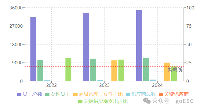治理维度数据完整度为75%,已披露部分治理架构信息,但ESG目标与薪酬挂钩机制未进行量化披露,削弱了治理措施的可衡量性与执行透明度。尽管审验机构对供应商管理、能源消耗、水资源等部分环境指标的可靠性进行了核证,但治理层面关键机制的量化缺失仍构成数据完整性短板。