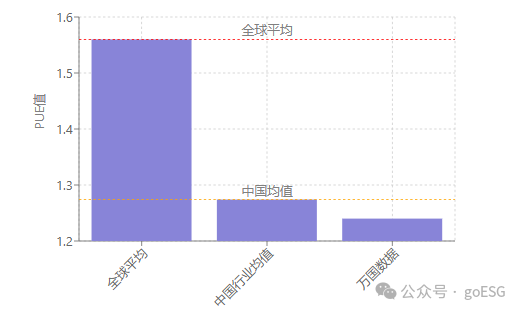 从关键环境绩效指标来看,万国数据在行业内处于领先区间。在能源效率方面,2024年中国互联网企业数据中心PUE平均值为1.274(统计限已披露企业),全球数据中心平均PUE为1.56,而万国数据数据中心平均PUE达到1.24,不仅优于国内行业均值(1.274),亦显著低于全球平均水平(1.56),结合行业分布特征,其PUE表现可定位为行业前10%区间。