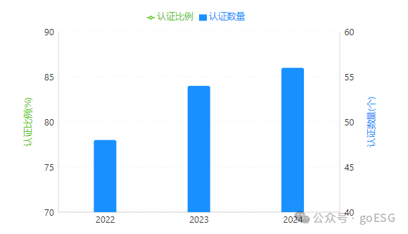绿色建筑认证及其生态影响成效方面,万国数据对新建数据中心的生态保护投入显著。自2020年以来新投产的自建数据中心中,87%参考绿色建筑标准进行设计、施工与运维,这一比例较2022年的77%显著提升,并在2023年至2024年间保持稳定。截至2024年,公司累计获得56个绿色数据中心证书,较2023年的54个和2022年的48个持续增长,绿色建筑认证项目的规模化布局有助于降低数据中心建设与运营对周边生态环境的影响,提升能源与资源利用效率。